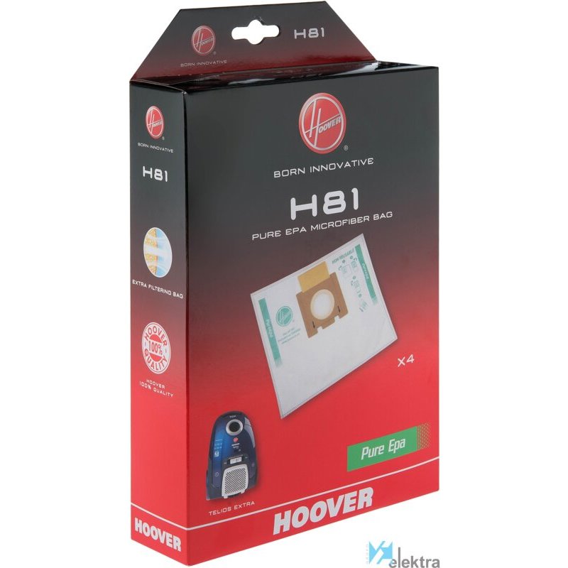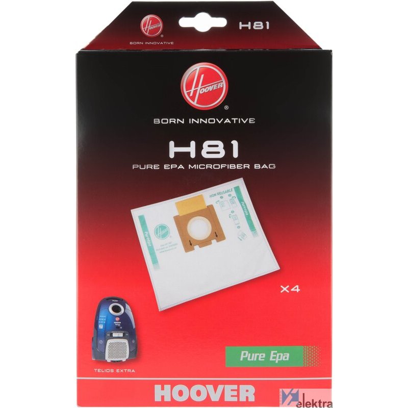 Hoover H81 - Micro Bag. Tipo de producto: Bolsa para el polvo, Adecuado para tipo aspirador: Aspiradora cilíndrica, Color del producto: Blanco. Tipo de embalaje: Caja. Cantidad por paquete: 4 pieza(s)