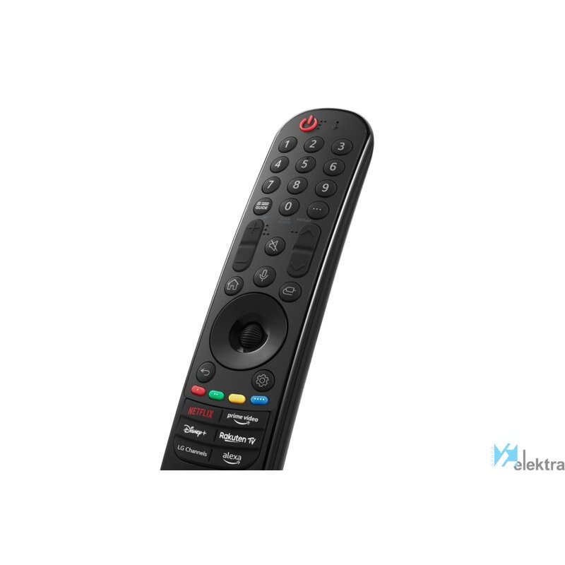 | Otras Características | Navegación fácil y cómoda. Mando Magic Remote PREMIUM con sensor de Movimiento para navegar por tu TV con puntero inalámbrico. Control por voz. Incluye Micrófono integrado para interactuar por voz mediante comandos compatibles con Alexa y ThinQ. Botones programables. Teclas de canal 1-9, 8 de ellas programables para disponer de acceso directo a diferentes aplicaciones, entradas, canales o servicios. Accesos directo a plataformas de streaming Accesos Directos a Netflix, Prime Video, WuakiTV, Disney+ y LG Channels |