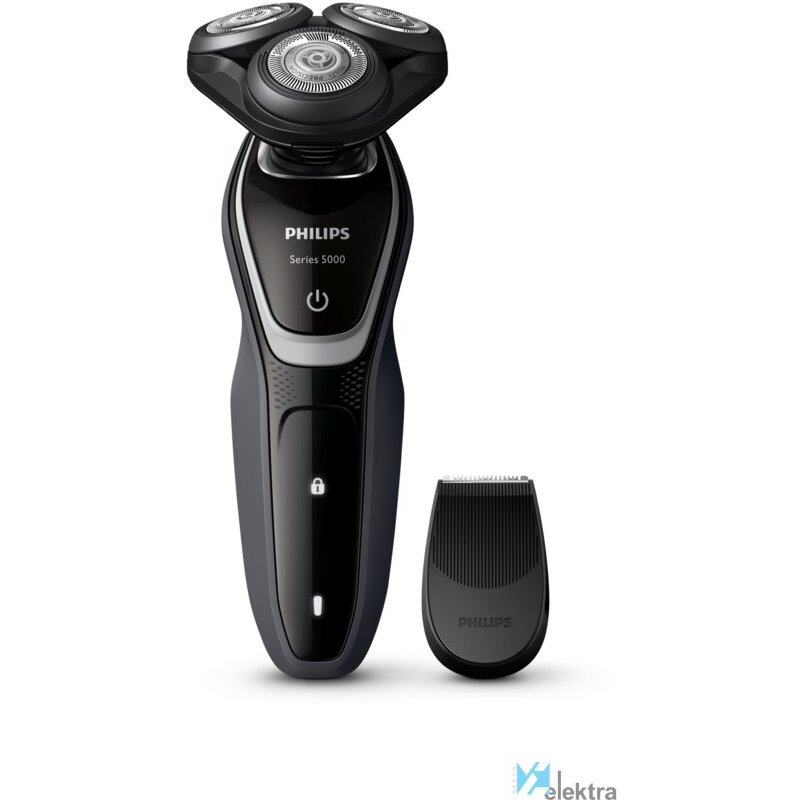 Philips SHAVER Series 5000 S5110/06 Afeitadora eléctrica en seco. Sistema de afeitado: Máquina de afeitar de rotación, Color del producto: Negro, Plata, Tecnologías de sistema de afeitado: MultiPrecision Blade System. Fuente de energía: AC/Batería, Tecnología de batería: Ión de litio, Tiempo de funcionamiento: 40 min. Ancho del paquete: 159 mm, Profundidad del paquete: 70 mm, Altura del paquete: 232 mm. Cantidad por paquete: 1 pieza(s), Peines accesorios: Nariz. Característica(s) de mango: Ergonómico, País de origen: Países Bajos