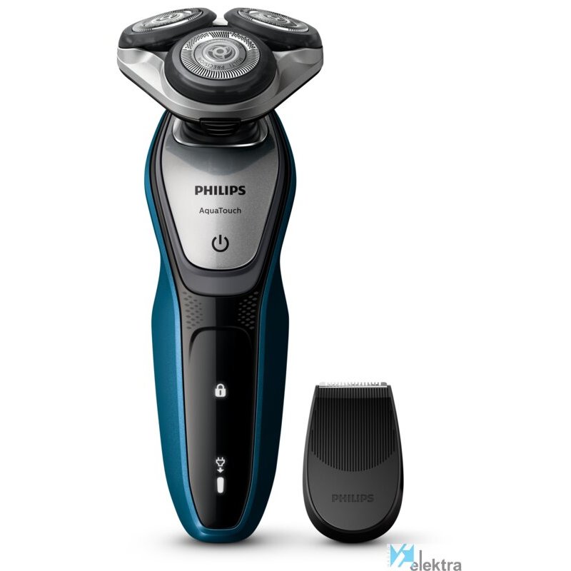 Philips SHAVER Series 5000 S5420/06 Afeitadora eléctrica en seco y húmedo. Sistema de afeitado: Máquina de afeitar de rotación, Color del producto: Negro, Azul, Plata, Tecnologías de sistema de afeitado: MultiPrecision Blade System. Fuente de energía: Batería, Tecnología de batería: Ión de litio, Tiempo de funcionamiento: 45 min. Ancho del paquete: 159 mm, Profundidad del paquete: 70 mm, Altura del paquete: 232 mm. Cantidad por paquete: 1 pieza(s), Peines accesorios: Nariz. Característica(s) de mango: Ergonómico, País de origen: Países Bajos