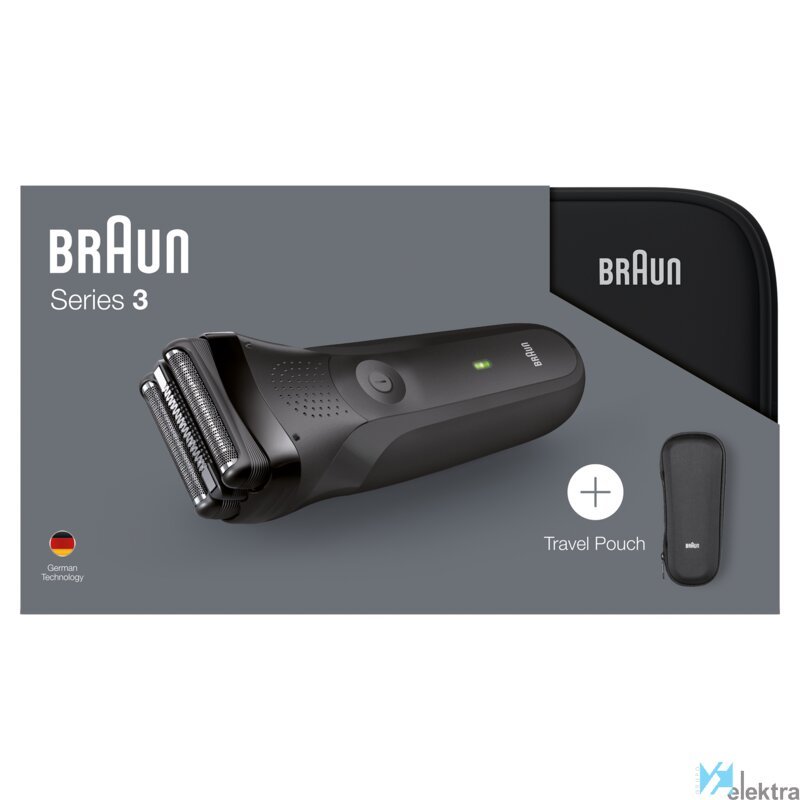Braun Series 3 300s. Sistema de afeitado: Máquina de afeitar de láminas, Color del producto: Negro, Tipo de visualizador: LED. Fuente de energía: Batería, Tecnología de batería: Níquel-metal hidruro (NiMH), Tipo de batería: Batería integrada. Peso: 330 g. Ancho del paquete: 56 mm, Profundidad del paquete: 112 mm, Altura del paquete: 203 mm. Cantidad por paquete: 1 pieza(s)