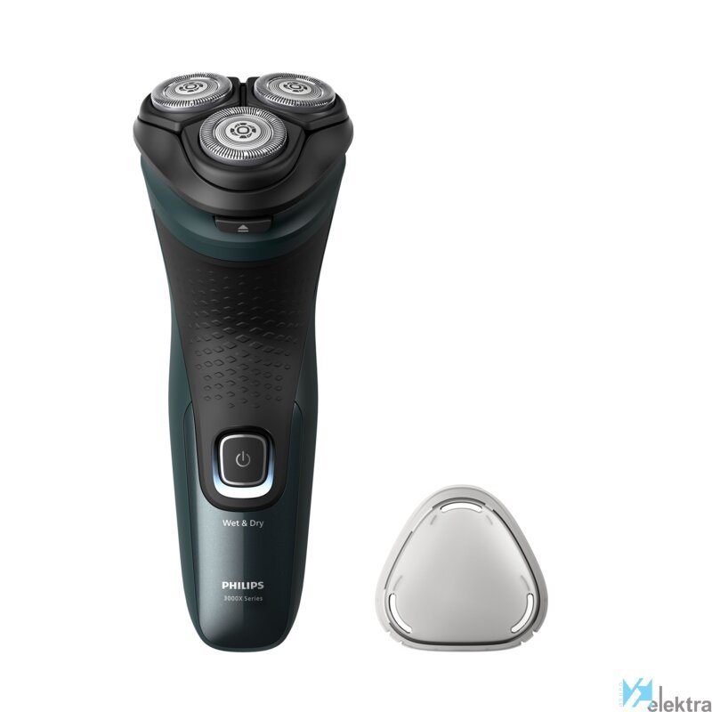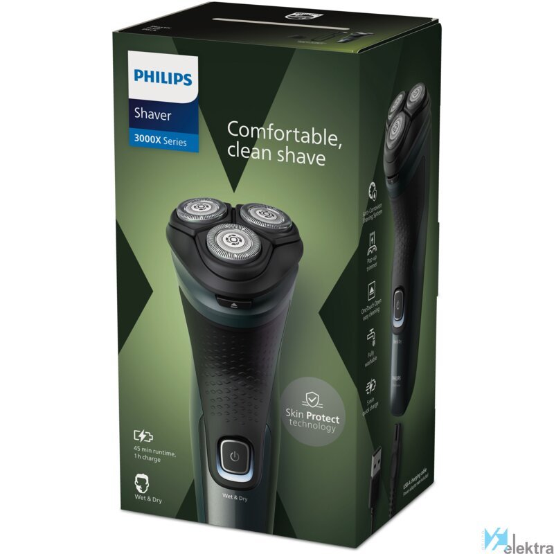 Philips Shaver 3000X Series X3052/00 Afeitadora eléctrica en seco y en húmedo. Sistema de afeitado: Máquina de afeitar de rotación, Color del producto: Negro, Verde, Tecnologías de sistema de afeitado: PowerCut blade system. Fuente de energía: Batería, Tecnología de batería: Níquel-metal hidruro (NiMH), Tipo de batería: Batería integrada. Ancho: 100 mm, Profundidad: 80 mm, Altura: 190 mm. Peso del paquete: 439 g, Tipo de embalaje: Caja. Cantidad por paquete: 1 pieza(s)