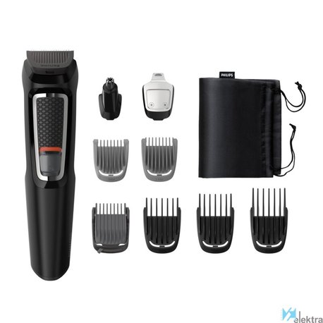 Philips MULTIGROOM Series 3000 MG3740/15 Cara y cabello 9 en 1. Color del producto: Negro, Forma: Rectángulo, Uso del cortapelos de precisión: Barba, Oído, Ceja, Bigote, Nariz. Fuente de energía: Batería, Tiempo de funcionamiento: 60 min, Tipo de batería: Integrado. Tiempo de funcionamiento: 60 minRecipiente :