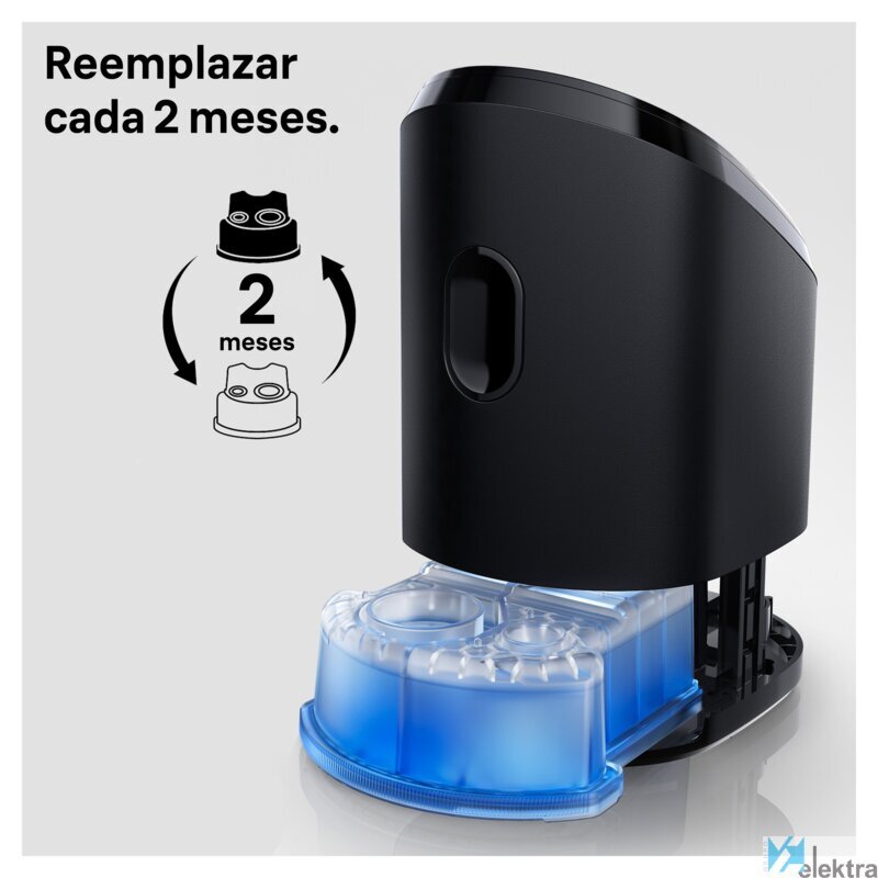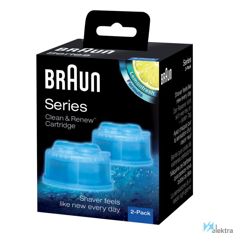 Braun CCR2. Tipo de producto: Cartucho de limpieza, Color del producto: Azul, Marca compatible: Braun. Peso: 395 g. Ancho del paquete: 89 mm, Profundidad del paquete: 101 mm, Altura del paquete: 121 mm. Cantidad por paquete: 2 pieza(s), Ancho de la caja principal: 256 mm, Longitud de la caja: 316 mmRecipiente :