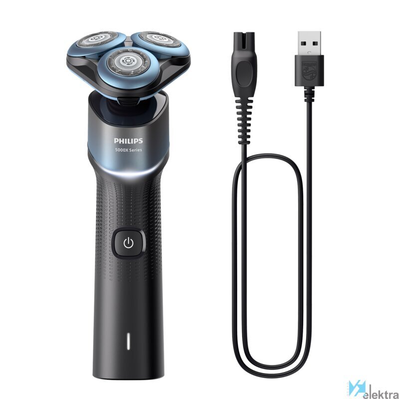 Philips Shaver 5000X series X5006/00 Afeitadora eléctrica Wet & Dry. Sistema de afeitado: Máquina de afeitar de rotación, Color del producto: Negro, Azul. Fuente de energía: Batería, Tecnología de batería: Ión de litio, Tiempo de funcionamiento: 50 min