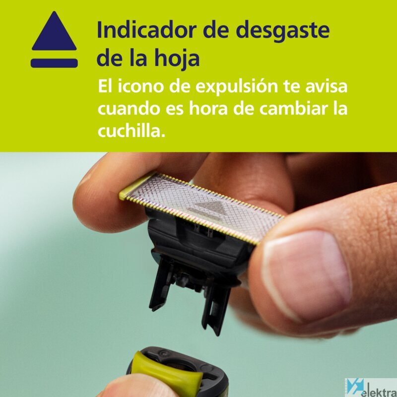 | Tecnología | Su doble sistema de protección, un revestimiento deslizante combinado con puntas redondeadas, hace el afeitado más fácil y cómodo. Su tecnología de afeitado incluye una unidad de corte de movimiento rápido que corta cualquier longitud de pelo. Fácil de usar. Para todos los mangos OneBlade. Cuchillas duraderas. |