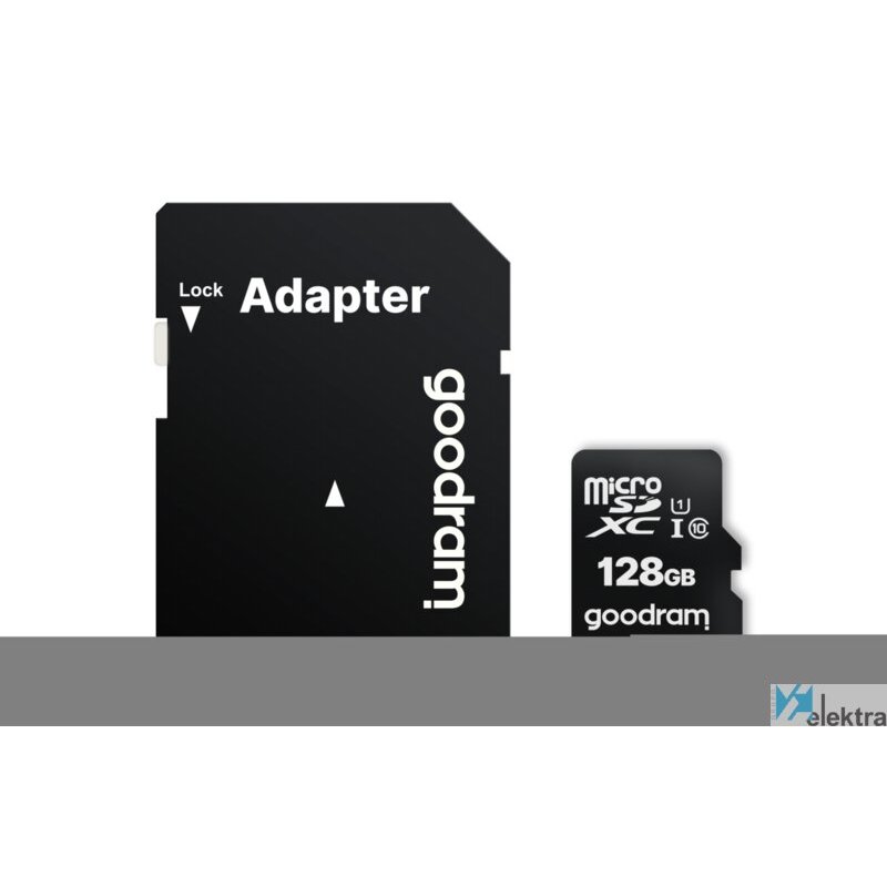 Goodram M1AA. Capacidad: 128 GB, Tipo de tarjeta flash: MicroSDXC, Clase de memoria flash: Clase 10, Tipo de memoria interna: UHS-I, Velocidad de lectura: 100 MB/s, Velocidad de escritura: 10 MB/s, Clase de velocidad UHS: Class 1 (U1). Funciones de protección: Protección contra campos magnéticos, Resistente a golpes, Resistente al agua, A prueba de rayos X, Color del producto: Negro