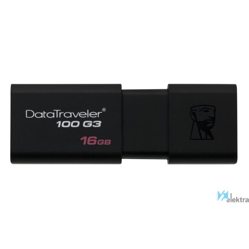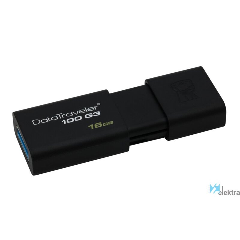 Kingston Technology DataTraveler 100 G3. Capacidad: 16 GB, Interfaz del dispositivo: USB tipo A, Versión USB: 3.2 Gen 1 (3.1 Gen 1), Velocidad de lectura: 40 MB/s, Velocidad de escritura: 10 MB/s. Factor de forma: Deslizar, Color del producto: NegroRecipiente :