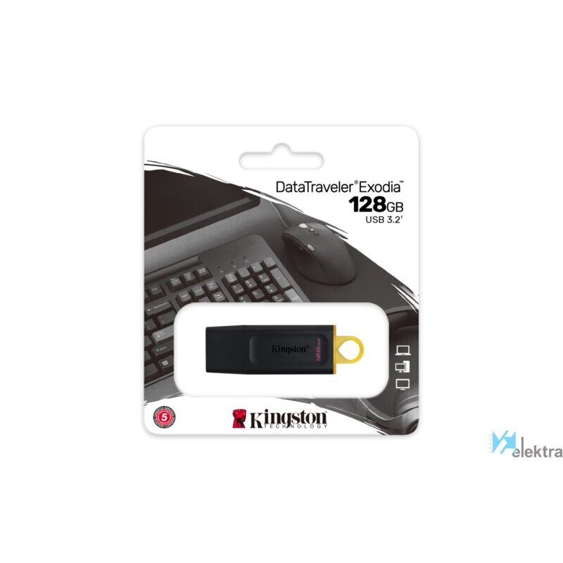 Kingston Technology DataTraveler Unidad Flash USB 3.2 Exodia. Capacidad: 128 GB, Interfaz del dispositivo: USB tipo A, Versión USB: 3.2 Gen 1 (3.1 Gen 1). Factor de forma: Tapa. Peso: 11 g. Color del producto: Negro, Amarillo