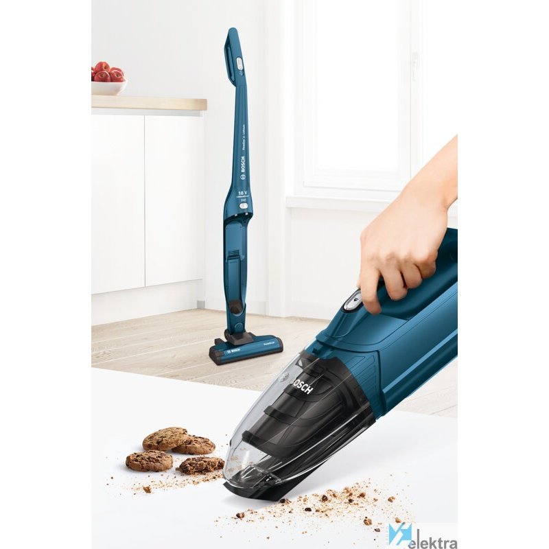 Bosch BBH21830L. Tipo de depósito: Sin bolsa, Color del producto: Azul. Tipo de limpiador: Secar, Método de separación de la suciedad: Filtrado. Fuente de energía: Batería, Tecnología de batería: Ión de litio, Voltaje de la pila: 18 V. Ancho: 265 mm, Profundidad: 165 mm, Altura: 1160 mm