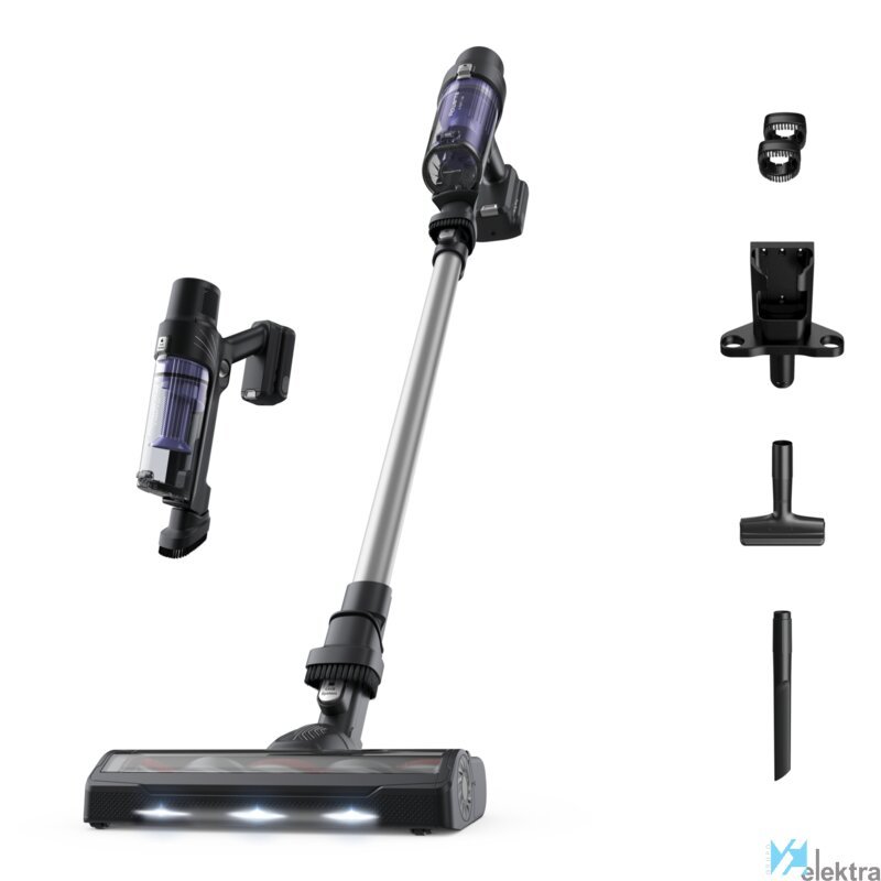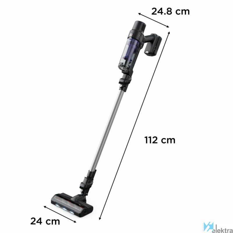 Rowenta RH6A35. Tipo de producto: Aspiradora escoba 2 en 1, Tipo de depósito: Sin bolsa, Color del producto: Púrpura, Plata. Tipo de limpiador: Secar, Método de separación de la suciedad: Ciclónico, Nivel de ruido: 81 dB. Fuente de energía: Batería, Potencia del motor: 140 W, Tecnología de batería: Ión de litio. Ancho: 240 mm, Profundidad: 248 mm, Altura: 1120 mm. Cepillos de aspiradora incluidos: Cepillo con luces LED