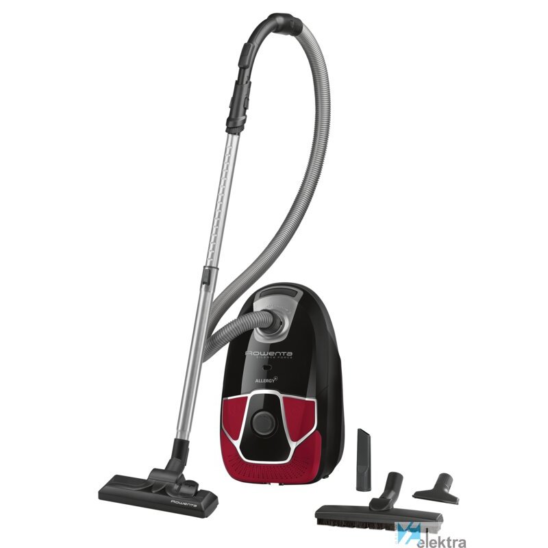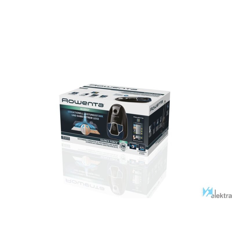 Rowenta Silence Force Allergy+ RO6859. Potencia máx. de entrada: 450 W. Tipo: Aspiradora cilíndrica, Tipo de limpiador: Secar, Tipo de depósito: Bolsa para el polvo, Capacidad para polvo: 4,5 L. Filtración de aire en aspiradora: HEPA, Método de separación de la suciedad: Filtrado, Nivel de ruido: 69 dB. Color del producto: Negro, Rojo