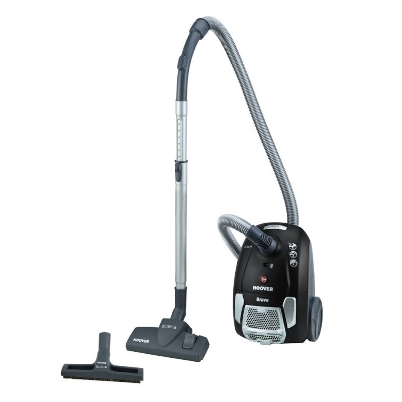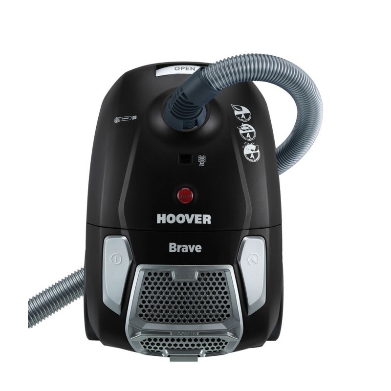 Hoover Brave BV71_BV20011. Potencia máx. de entrada: 700 W. Tipo: Aspiradora cilíndrica, Tipo de limpiador: Secar, Tipo de depósito: Bolsa para el polvo, Capacidad para polvo: 2,3 L. Filtración de aire en aspiradora: EPA, Método de separación de la suciedad: Filtrado, Nivel de ruido: 79 dB. Color del producto: Negro