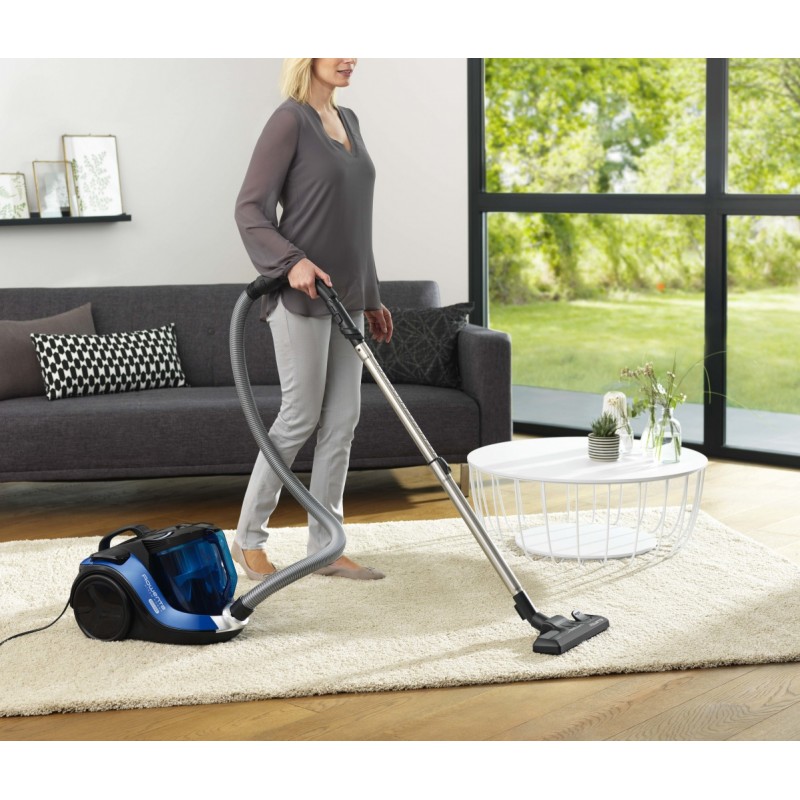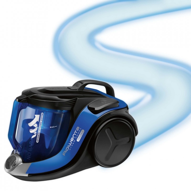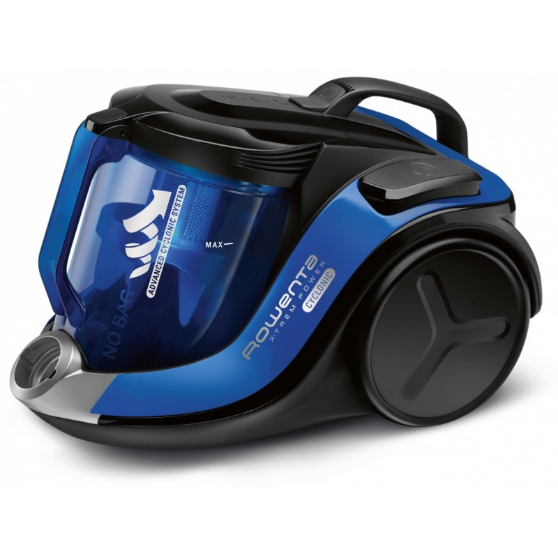 Rowenta X-Trem Power Cyclonic Parquet. Potencia máx. de entrada: 750 W. Tipo: Aspiradora cilíndrica, Tipo de limpiador: Secar, Tipo de depósito: Sin bolsa, Capacidad para polvo: 2,5 L. Filtración de aire en aspiradora: Espuma, Método de separación de la suciedad: Ciclónico, Nivel de ruido: 75 dB. Color del producto: Negro, AzulRecipiente :