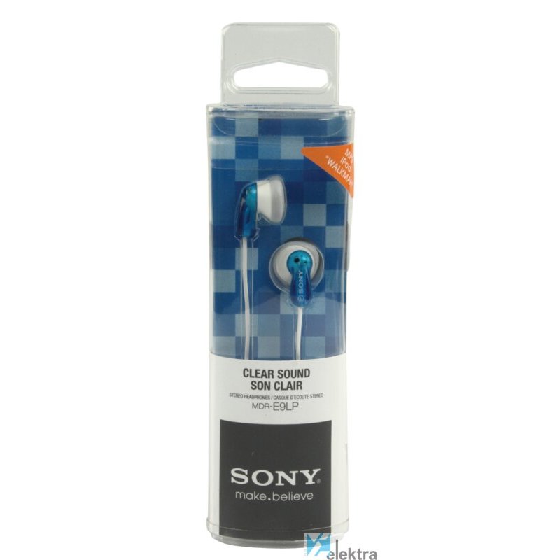 Sony MDR-E9LP. Tipo de producto: Auriculares. Tecnología de conectividad: Alámbrico. Uso recomendado: Música. Frecuencia de auricular: 18 - 22000 Hz. Longitud de cable: 1,2 m. Peso: 6 g. Color del producto: Azul, Blanco
