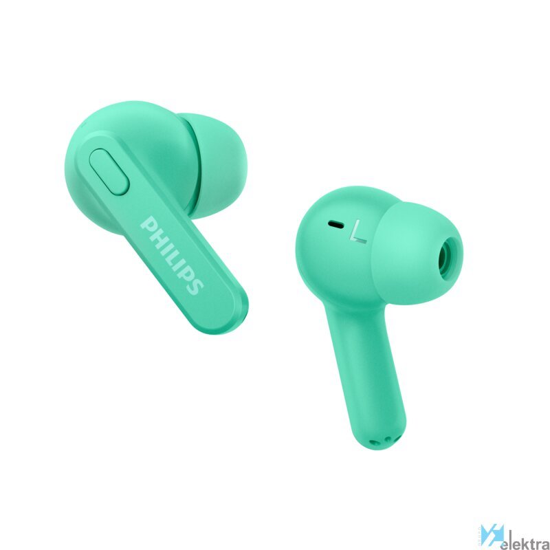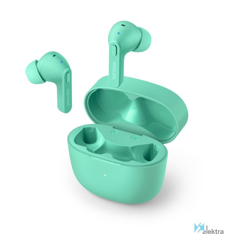 Philips 2000 series TAT2206GR/00. Tipo de producto: Auriculares. Tecnología de conectividad: True Wireless Stereo (TWS), Bluetooth. Uso recomendado: Llamadas/Música. Frecuencia de auricular: 20 - 20000 Hz. Alcance inalámbrico: 10 m. Peso: 37 g. Color del producto: TurquesaRecipiente :
