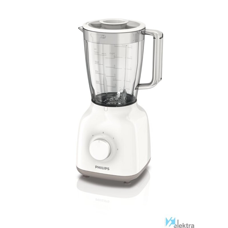 Philips Daily Collection HR2100/00 Batidora. Tipo: Batidora de vaso, Color del producto: Blanco, Longitud del cable: 0,85 m. Capacidad del tazón: 1,5 L. Material de la cuchilla: Acero inoxidable, Material de las jarras: SAN. Potencia: 400 W, Voltaje de entrada AC: 220 - 240 V, Frecuencia de entrada AC: 50 - 60 HzRecipiente :