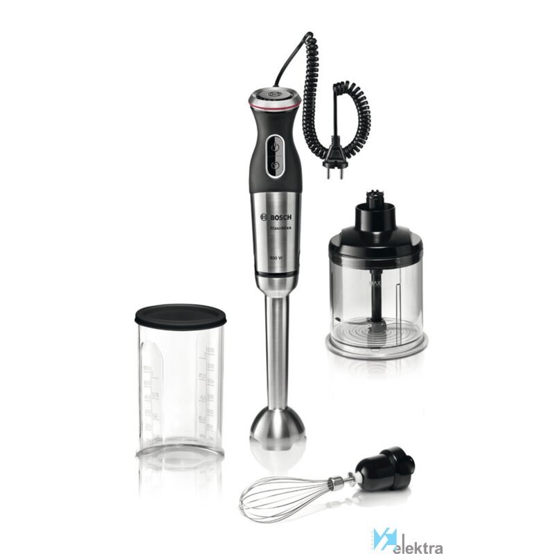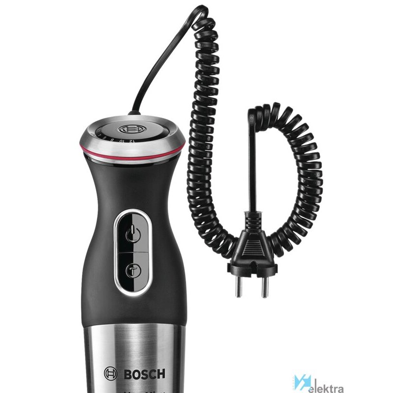 Bosch MSM88160. Tipo: Batidora de inmersión, Color del producto: Negro, Acero inoxidable, Longitud del cable: 2,6 m. Material del vaso: Plástico, Material de la cuchilla: Acero inoxidable. Potencia: 800 W, Frecuencia de entrada AC: 50 - 60 Hz. Ancho: 63 mm, Profundidad: 63 mm, Altura: 402 mm