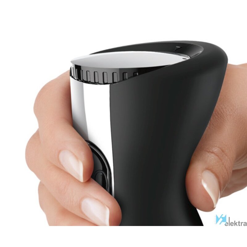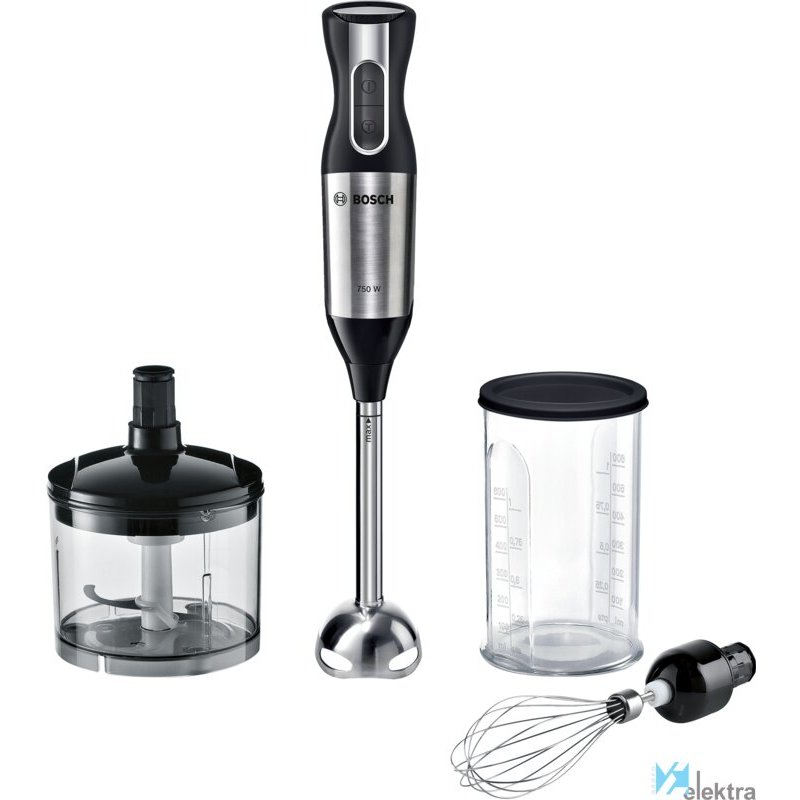 Bosch MSM6S50B. Tipo de control: Botones, Giratorio. Tipo: Batidora de inmersión, Color del producto: Negro, Acero inoxidable. Material de la carcasa: Plástico, Acero inoxidable, Material de agarradera: Plástico, Material del eje: Metal. Potencia: 750 W, Fuente de energía: Corriente alterna, Voltaje de entrada AC: 220 - 240 V. Peso: 1,5 kgRecipiente :