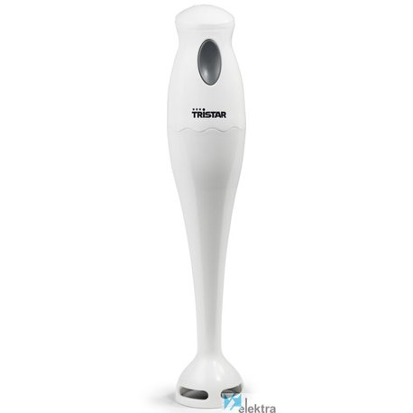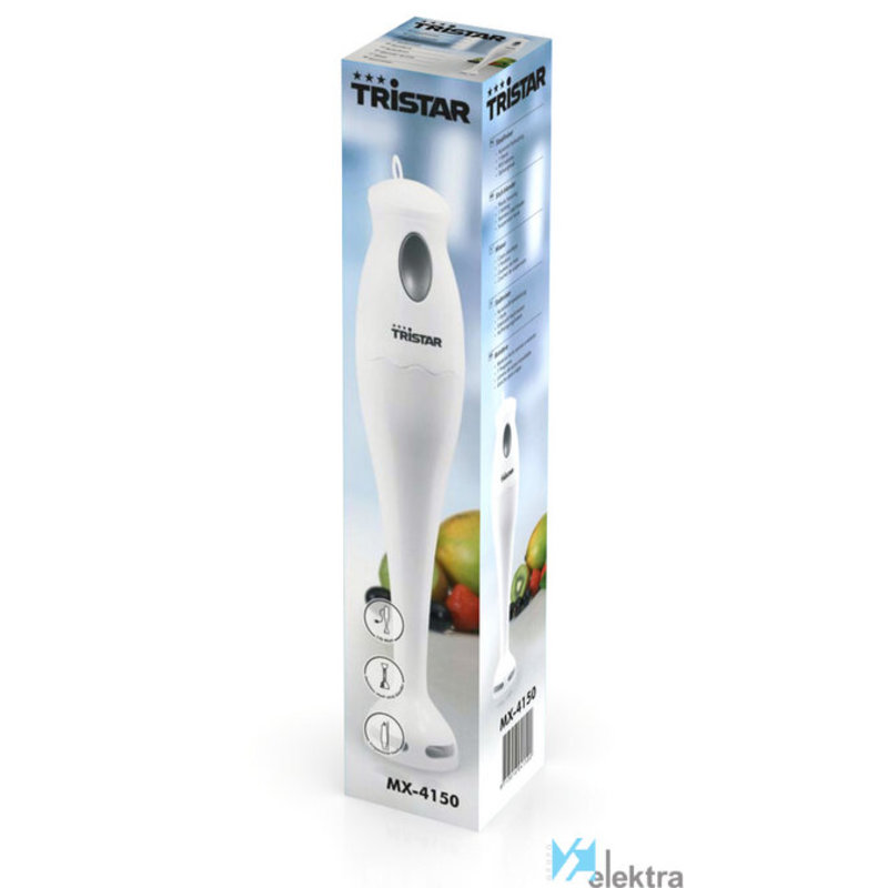 Tristar MX-4150 Batidora de mano. Tipo: Batidora de inmersión, Color del producto: Blanco. Tipo de control: Botones. Material de la carcasa: Plástico, Material de la cuchilla: Acero inoxidable. Potencia: 170 W, Fuente de energía: Corriente alterna, Voltaje de entrada AC: 230 V. Peso: 588 gRecipiente :