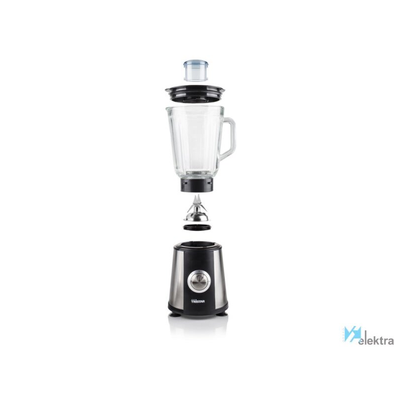 Tristar BL-4441 Batidora. Tipo: Batidora de vaso, Color del producto: Negro, Acero inoxidable. Capacidad del tazón: 1 L, Tipo de control: Giratorio. Material del vaso: Vidrio, Material de la carcasa: Acero inoxidable. Potencia: 350 W, Fuente de energía: Corriente alterna, Voltaje de entrada AC: 220 - 240 V. Ancho: 154 mm, Profundidad: 154 mm, Altura: 334 mm