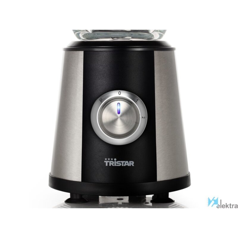 Tristar BL-4441 Batidora. Tipo: Batidora de vaso, Color del producto: Negro, Acero inoxidable. Capacidad del tazón: 1 L, Tipo de control: Giratorio. Material del vaso: Vidrio, Material de la carcasa: Acero inoxidable. Potencia: 350 W, Fuente de energía: Corriente alterna, Voltaje de entrada AC: 220 - 240 V. Ancho: 154 mm, Profundidad: 154 mm, Altura: 334 mmRecipiente :