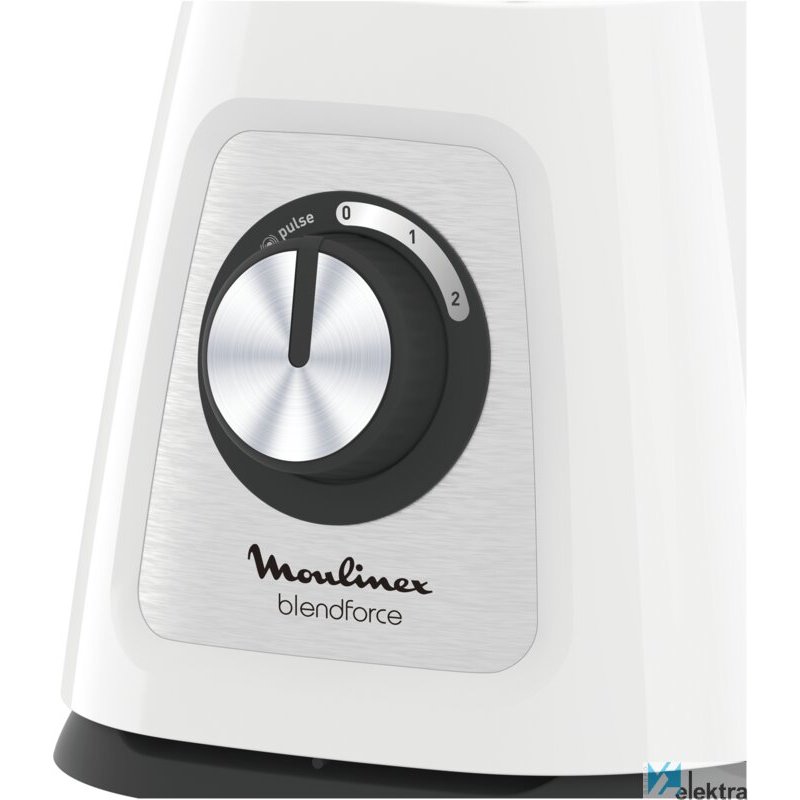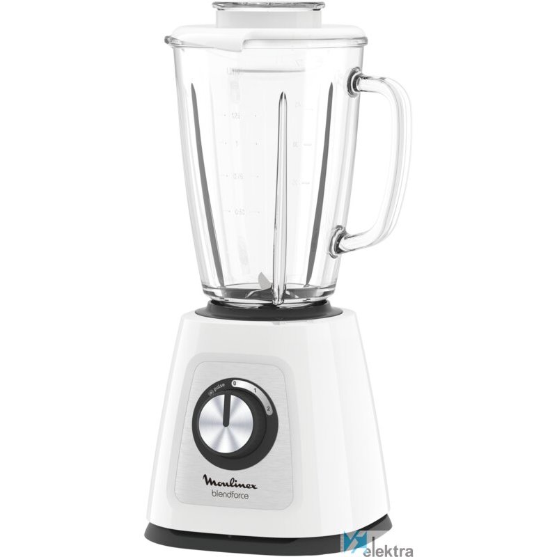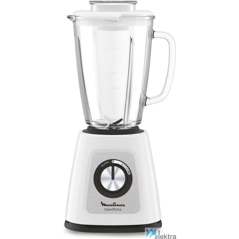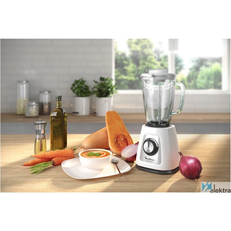 Moulinex LM430. Tipo: Batidora de vaso, Color del producto: Blanco. Capacidad del tazón: 1,75 L, Tipo de control: Giratorio. Material del vaso: Vidrio. Potencia: 800 W, Fuente de energía: Corriente alterna. Ancho: 175 mm, Profundidad: 207 mm, Altura: 402 mm