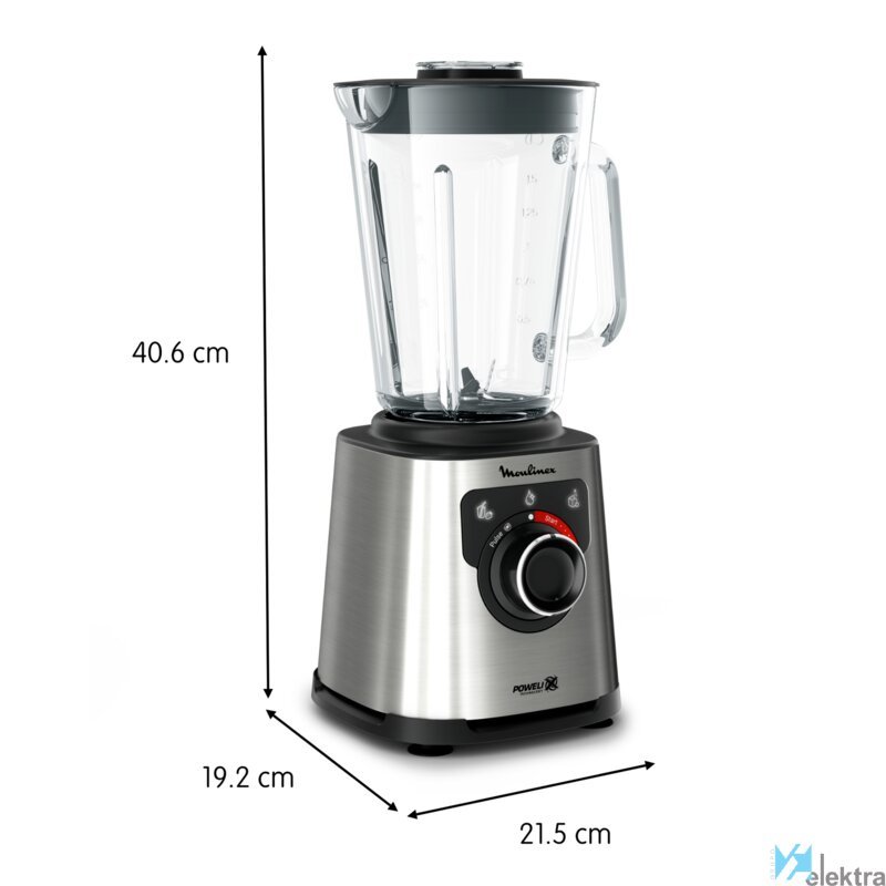 Moulinex LM871D. Tipo: Batidora de vaso, Color del producto: Acero inoxidable, Gris, Tecnología: Powelix. Capacidad del tazón: 1,5 L, Tipo de control: Giratorio, Capacidad máxima del depósito: 2 L. Material del vaso: Vidrio. Potencia: 1200 W, Fuente de energía: Corriente alterna. Ancho: 192 mm, Profundidad: 215 mm, Altura: 406 mm