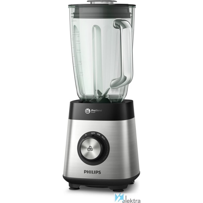 Philips 5000 series Batidora Core serie 5000 HR3571/90. Tipo: Batidora de vaso, Color del producto: Metálico. Capacidad del tazón: 2 L, Tipo de control: Giratorio, Tipo de visualizador: LED. Material del vaso: Vidrio, Material de la carcasa: Metal, Material de la cuchilla: Acero inoxidable. Potencia: 1000 W, Fuente de energía: Corriente alterna. País de origen: China, Periodo de garantía: 2 año(s)