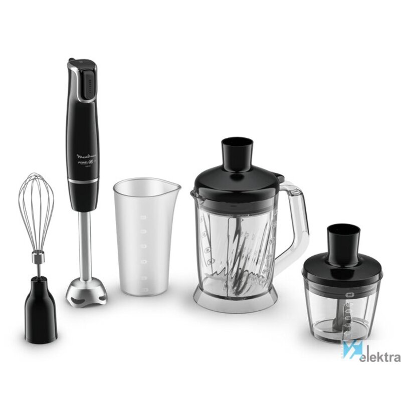 Moulinex DD94L810. Tipo: Batidora de inmersión, Color del producto: Negro, Transparente, Tecnologías específicas: Powelix. Capacidad del tazón: 1 L, Tipo de control: Botones, Capacidad del tazón de molido: 0,5 L. Material de la cuchilla: Titanio. Potencia: 1000 W, Fuente de energía: Corriente alterna. Altura: 400 mmRecipiente :