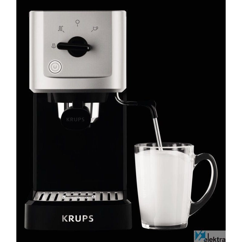 Krups XP3440. Tipo de producto: Máquina espresso, Máquina de café: Manual, Capacidad de reservorio de agua: 1,1 L, Café tipo de entrada: De café molido, Depósito para café preparado: Taza, Capacidad en tazas: 2 tazas. Color del producto: Negro, Acero inoxidable