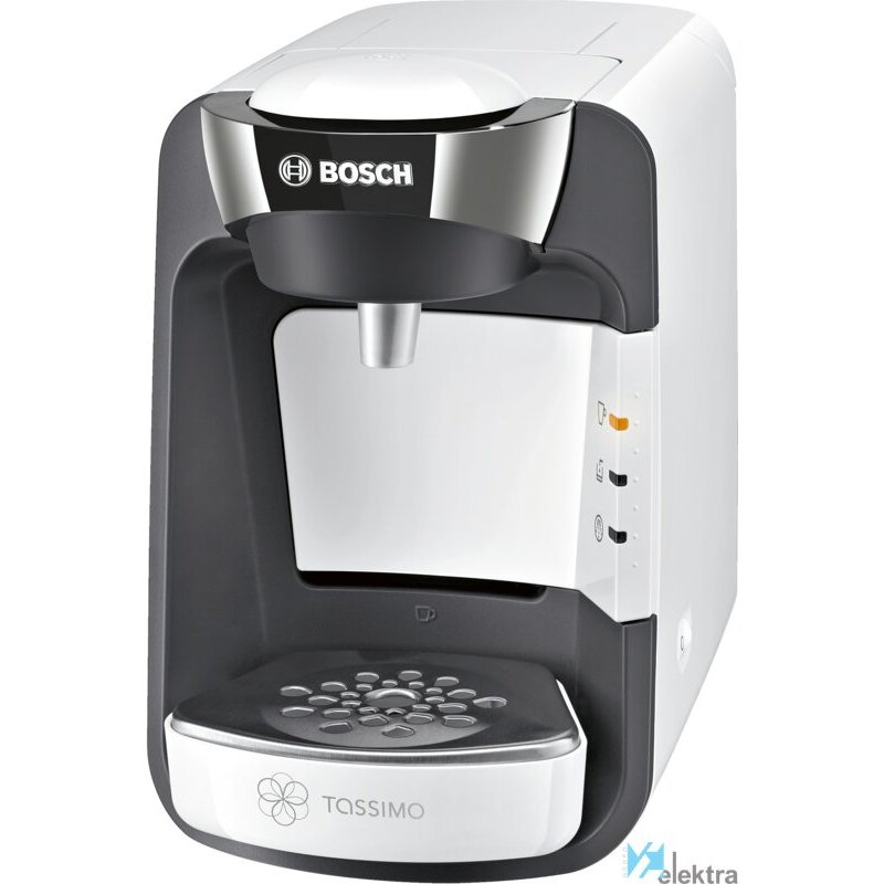 Bosch TASSIMO SUNY. Tipo de producto: Macchina per caffè a capsule, Máquina de café: Semi-automática, Capacidad de reservorio de agua: 0,8 L, Café tipo de entrada: Cápsula de café, Número de surtidores: 1. Potencia: 1300 W. Color del producto: Cromo, BlancoRecipiente :