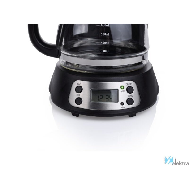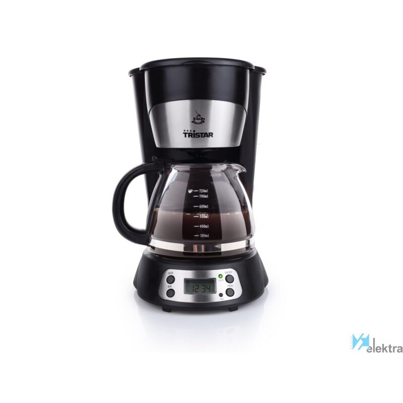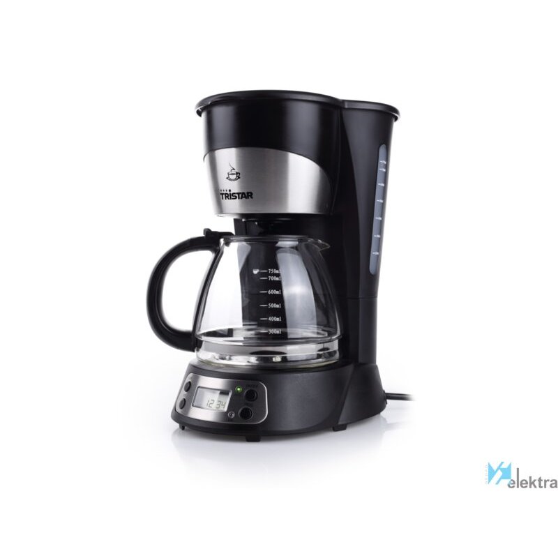 Tristar CM-1235 Cafetera Eléctrica. Tipo de producto: Cafetera de filtro, Máquina de café: Totalmente automática, Capacidad de reservorio de agua: 0,75 L, Café tipo de entrada: De café molido, Depósito para café preparado: Jarra, Capacidad en tazas: 8 tazas. Tipo de visualizador: LCD. Potencia: 700 W. Color del producto: Negro, Acero inoxidable