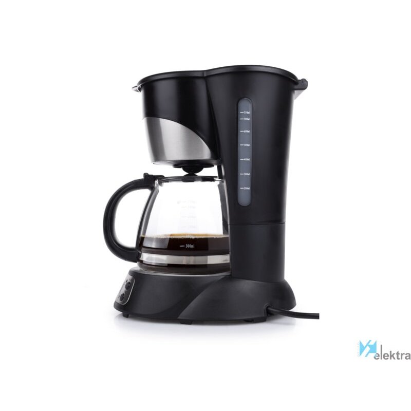Tristar CM-1235 Cafetera Eléctrica. Tipo de producto: Cafetera de filtro, Máquina de café: Totalmente automática, Capacidad de reservorio de agua: 0,75 L, Café tipo de entrada: De café molido, Depósito para café preparado: Jarra, Capacidad en tazas: 8 tazas. Tipo de visualizador: LCD. Potencia: 700 W. Color del producto: Negro, Acero inoxidableRecipiente :