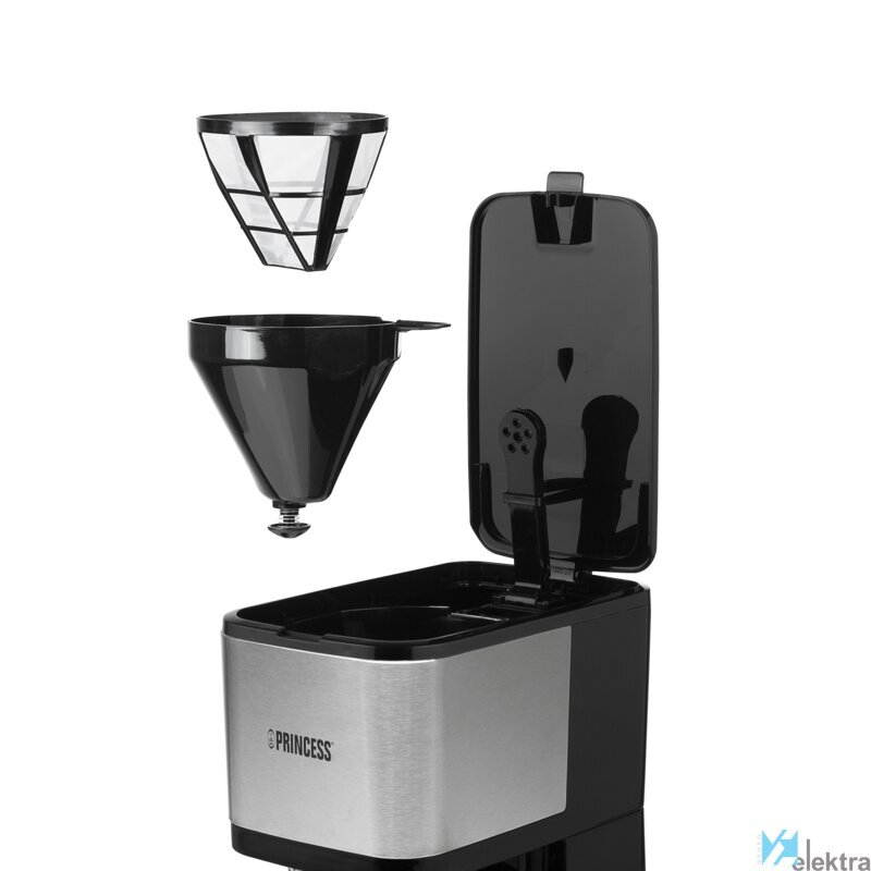 Princess 01.246031.01.001 Cafetera de filtro compacta. Tipo de producto: Cafetera de filtro, Máquina de café: Manual, Capacidad de reservorio de agua: 1,25 L, Café tipo de entrada: De café molido, Depósito para café preparado: Jarra, Capacidad en tazas: 12 tazas. Potencia: 750 W. Color del producto: Negro, Acero inoxidable