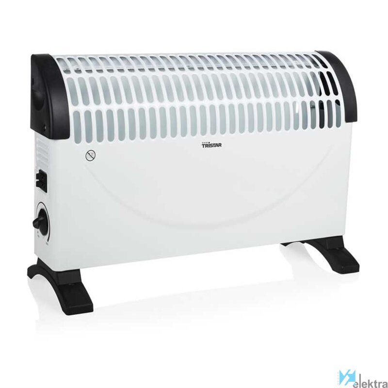 Tristar KA-5911 Calefactor Eléctrico (Convección). Tipo: Convector. Adecuado para: Interior, Opciones de colocación: Piso, Color del producto: Blanco. Potencia de calentamiento: 1500 W, Potencia de calentamiento (min): 750 W, Adecuado para habitaciones hasta: 50 m³. Potencia: 1500 W, Tipo de enchufe: Type F (CEE 7/4). Ancho: 535 mm, Profundidad: 196 mm, Altura: 385 mm