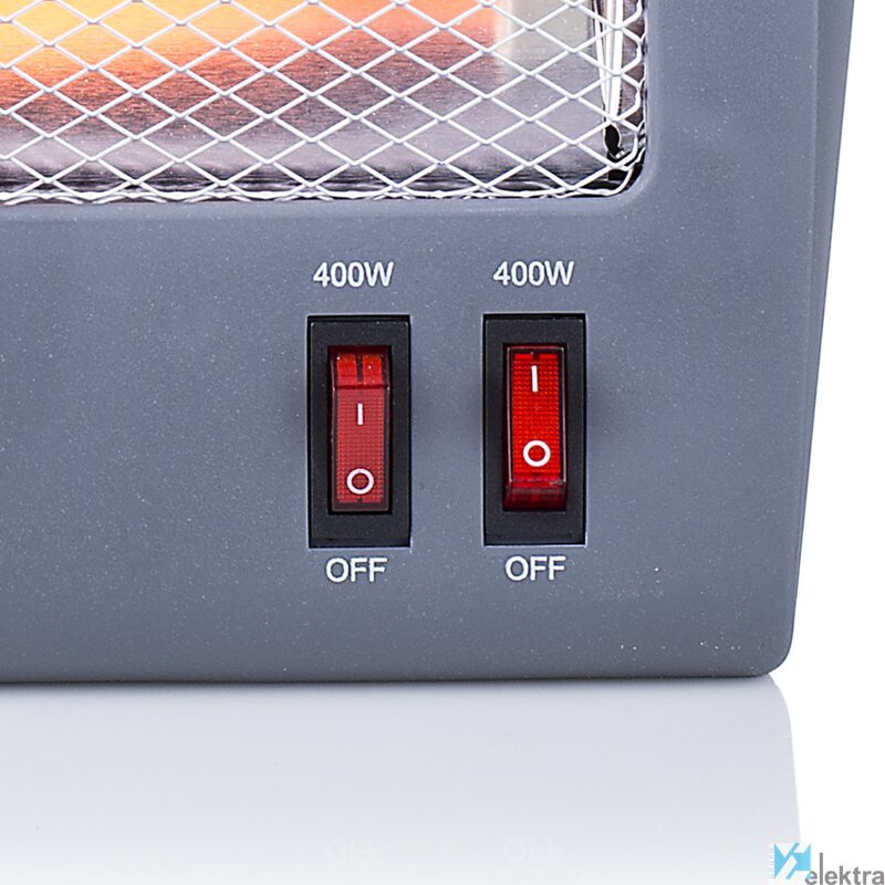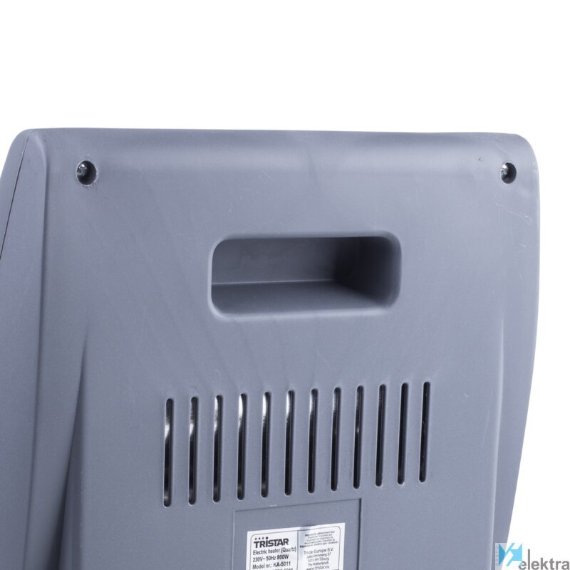 Tristar KA-5011 Calefactor Eléctrico (Cuarzo). Tipo: Calefactor eléctrico de cuarzo. Adecuado para: Interior, Opciones de colocación: Piso, Color del producto: Gris. Potencia de calentamiento: 800 W, Potencia de calentamiento (min): 400 W. Peso: 961 g. Ancho del paquete: 145 mm, Profundidad del paquete: 310 mm, Altura del paquete: 380 mm