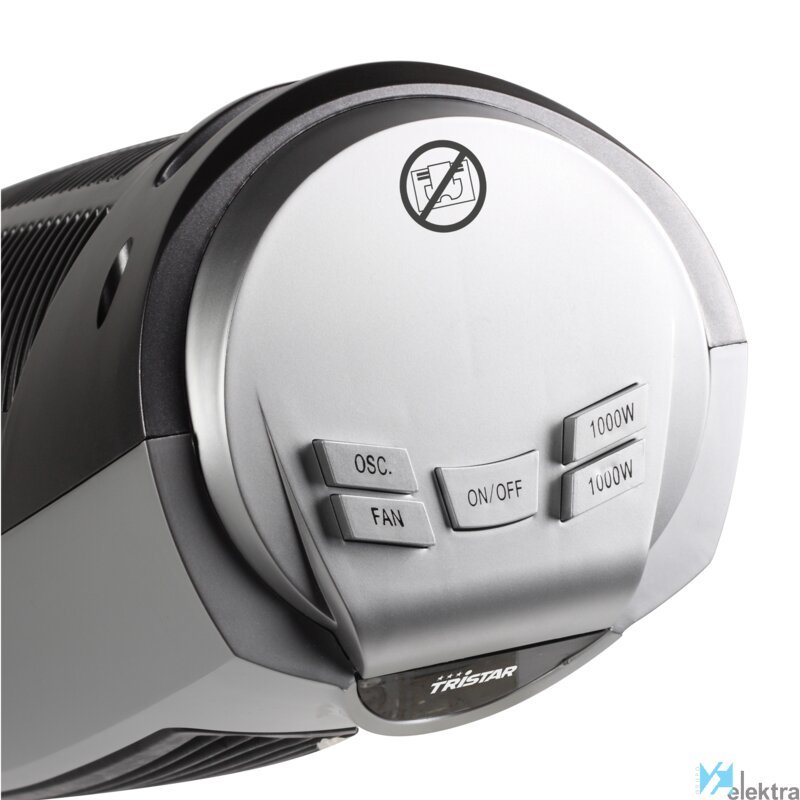 Tristar KA-5036 Calefactor eléctrico de torre (cerámico). Tipo: Ventilador eléctrico, Calefacción tipo de elemento: Cerámico. Adecuado para: Interior, Opciones de colocación: Piso, Color del producto: Negro, Plata. Potencia de calentamiento: 2000 W, Potencia de calentamiento (min): 1000 W. Peso: 4,1 kg. Ancho del paquete: 265 mm, Profundidad del paquete: 245 mm, Altura del paquete: 570 mm