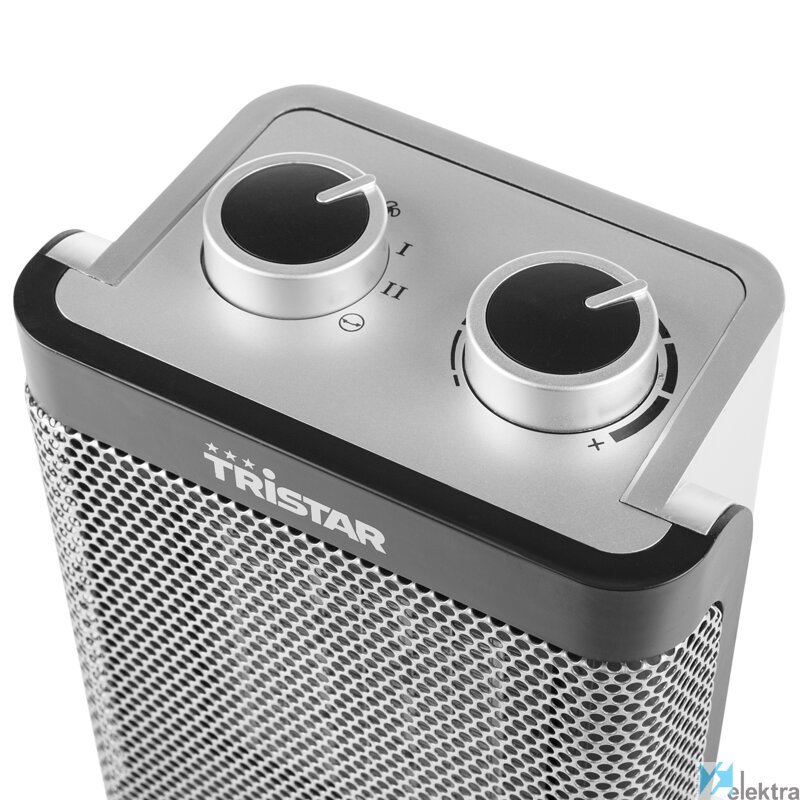 Tristar KA-5065 Calefactor Eléctrico (Cerámico). Tipo: Ventilador eléctrico, Calefacción tipo de elemento: Cerámico. Adecuado para: Interior, Opciones de colocación: Mesa, Color del producto: Negro, Plata. Potencia de calentamiento: 1500 W, Potencia de calentamiento (min): 1000 W. Ancho: 114 mm, Profundidad: 166 mm, Altura: 243 mm. Cantidad por paquete: 1 pieza(s)