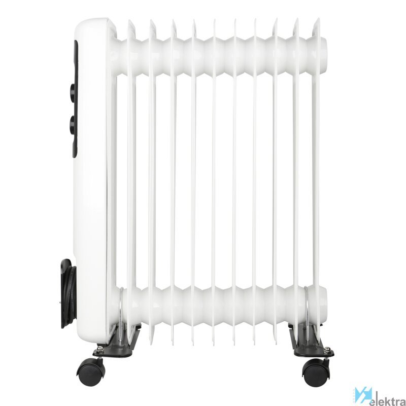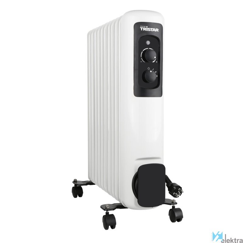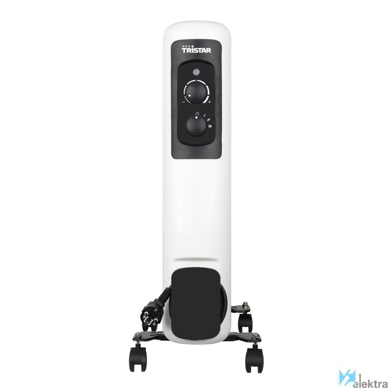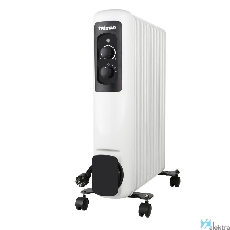 Tristar KA-5071 Radiador de aceite. Tipo: Radiador de aceite eléctrico, Calefacción tipo de elemento: Aceite, Longitud del cable: 1,5 m. Adecuado para: Interior, Opciones de colocación: Piso, Color del producto: Negro, Blanco. Potencia de calentamiento: 2000 W, Potencia de calentamiento (min): 800 W, Adecuado para habitaciones hasta: 65 m³. Voltaje de entrada AC: 220 - 240 V, Frecuencia de entrada AC: 50 / 60 Hz, Tipo de enchufe: Type F (CEE 7/4)