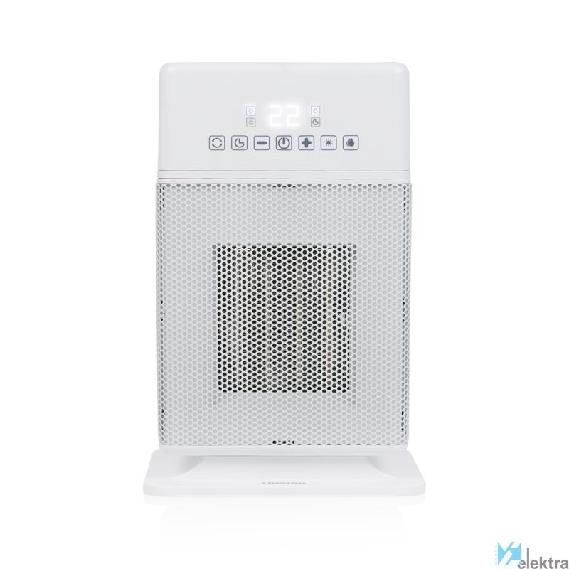 Tristar KA-5266. Calefacción tipo de elemento: Cerámico, Longitud del cable: 1,6 m, Código IP (International Protection): IPX0. Adecuado para: Interior, Opciones de colocación: Piso, Mesa, Color del producto: Blanco. Potencia de calentamiento: 2000 W, Adecuado para habitaciones hasta: 20 m², Nivel de ruido del ventilador (máx.): 56 dB. Potencia: 1800 W, Voltaje de entrada AC: 240 V, Frecuencia de entrada AC: 50 - 60 Hz. Ancho: 198 mm, Profundidad: 153 mm, Altura: 305 mm