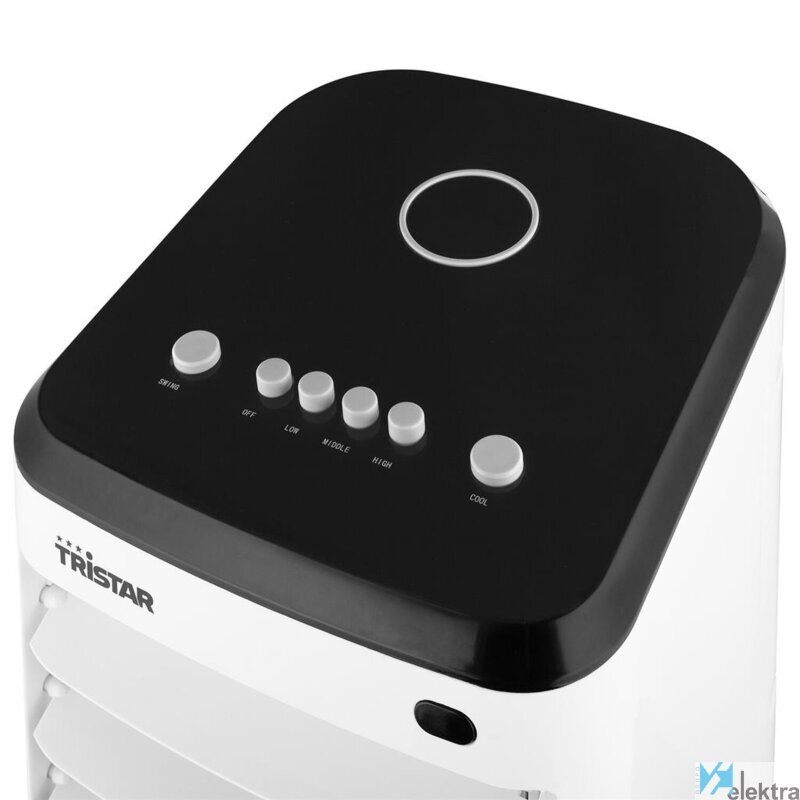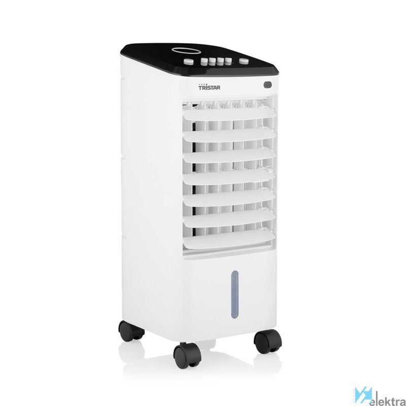 Tristar AT-5445. Tipo: Climatizador evaporativo portátil, Color del producto: Blanco, Número de ruedas: 4 rueda(s). Capacidad de reservorio de agua: 4 L, Nivel de ruido: 60,3 dB. Alimentación: Corriente alterna, Voltaje de entrada AC: 240 V, Frecuencia de entrada AC: 50 Hz. Ancho: 325 mm, Profundidad: 295 mm, Altura: 625 mmRecipiente :