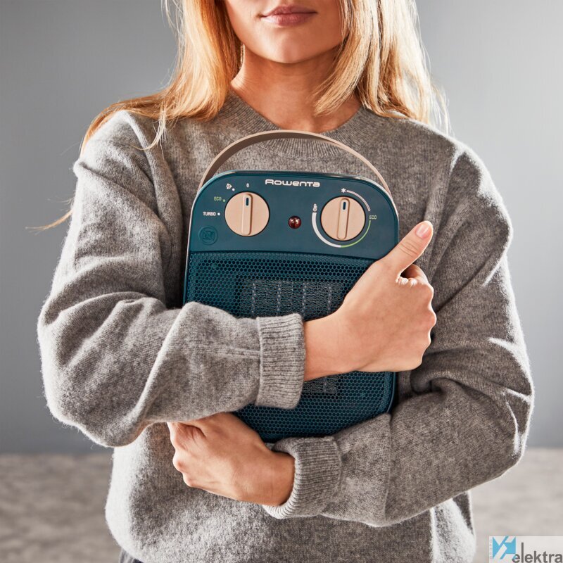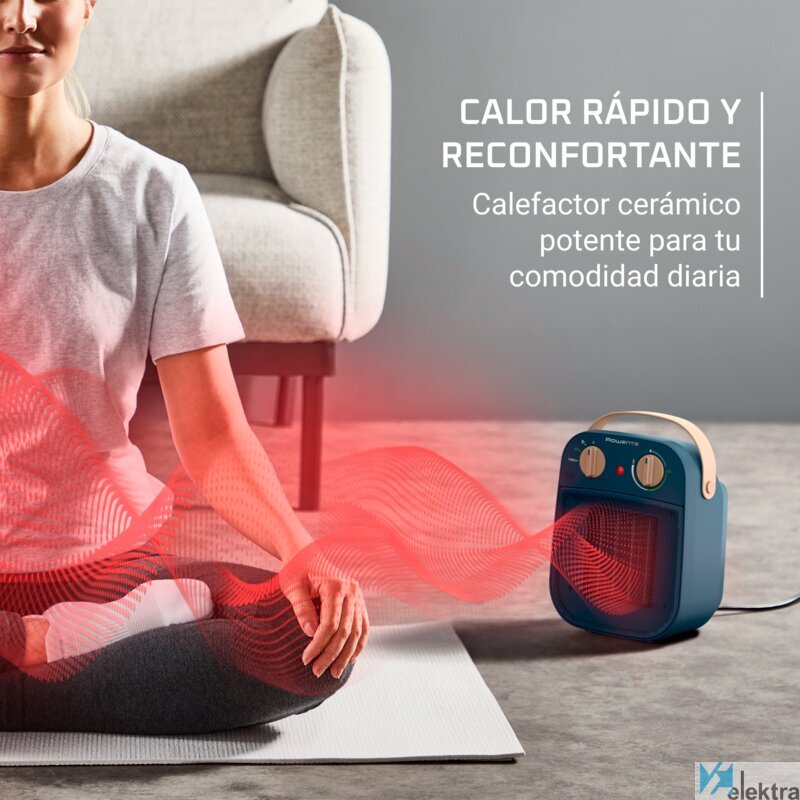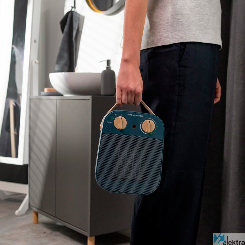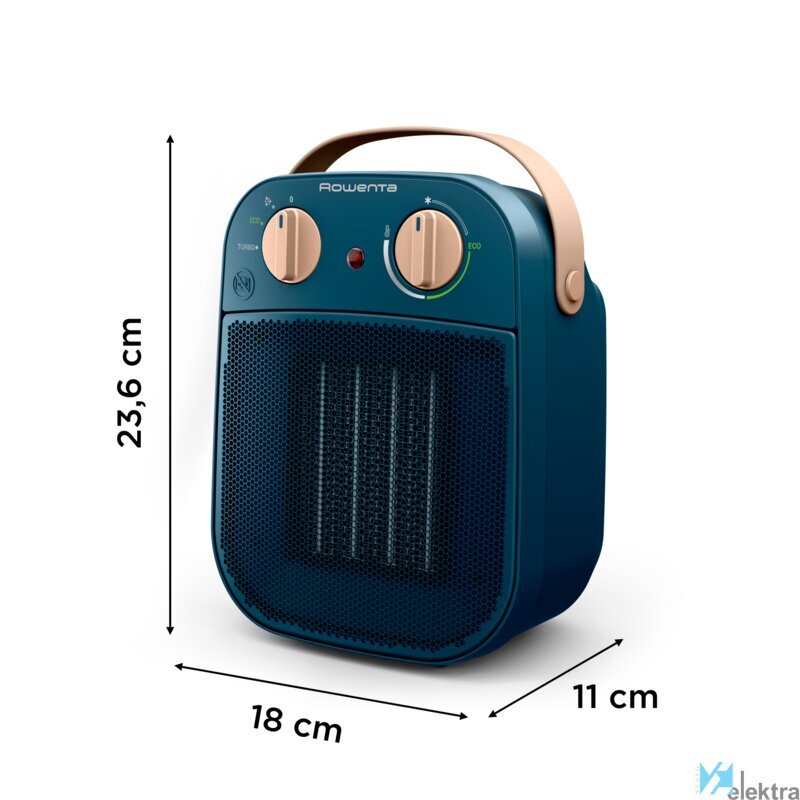 Rowenta My Nomad SO8230F0. Tipo: Ventilador eléctrico, Calefacción tipo de elemento: Cerámico. Adecuado para: Interior, Opciones de colocación: Mesa, Pared, Color del producto: Azul. Potencia de calentamiento: 1800 W, Adecuado para habitaciones hasta: 25 m², Nivel de ruido del ventilador (máx.): 42 dB. Potencia: 1800 W. Ancho: 186 mm, Profundidad: 105 mm, Altura: 265 mm