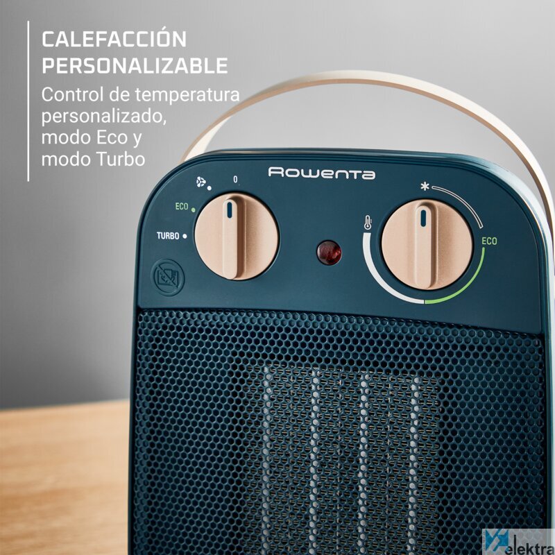 Rowenta My Nomad SO8230F0. Tipo: Ventilador eléctrico, Calefacción tipo de elemento: Cerámico. Adecuado para: Interior, Opciones de colocación: Mesa, Pared, Color del producto: Azul. Potencia de calentamiento: 1800 W, Adecuado para habitaciones hasta: 25 m², Nivel de ruido del ventilador (máx.): 42 dB. Potencia: 1800 W. Ancho: 186 mm, Profundidad: 105 mm, Altura: 265 mmRecipiente :