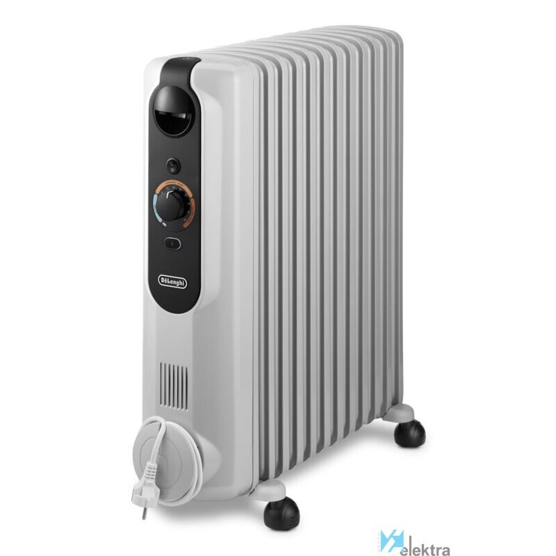 De?Longhi Radia-s Easytronic. Tipo: Radiador de aceite eléctrico. Adecuado para: Interior, Opciones de colocación: Piso, Color del producto: Negro, Blanco. Potencia de calentamiento: 2500 W, Potencia de calentamiento (min): 1100 W, Adecuado para habitaciones hasta: 75 m³. Voltaje de entrada AC: 230 V, Frecuencia de entrada AC: 50 Hz. Ancho: 277 mm, Profundidad: 592 mm, Altura: 650 mm