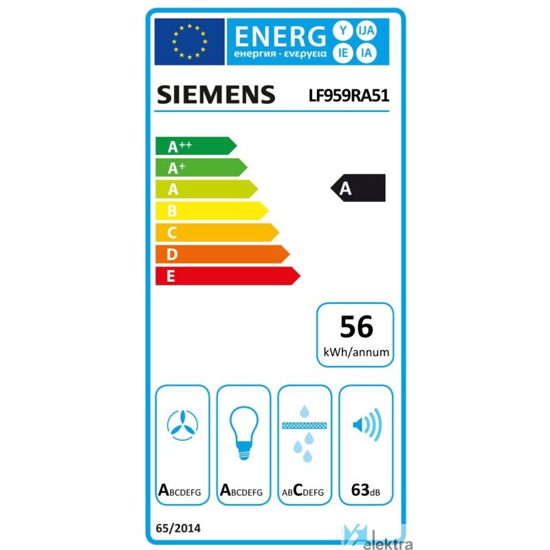 Siemens LF959RA51. Máxima capacidad de extracción: 820 m³/h, Tipo de extracción: Canalizado/Recirculación, Nivel de ruido: 63 dB. Tipo: De techo, Color del producto: Acero inoxidable, Tipo de control: Botones. Tipo de filtro de grasa: Sintético. Potencia de bombilla: 4 W, Número de bombillas: 4 bombilla(s), Tipo de bombilla: LED. Carga conectada: 279 W, Potencia del motor: 275 W, Voltaje de entrada AC: 220-230 V