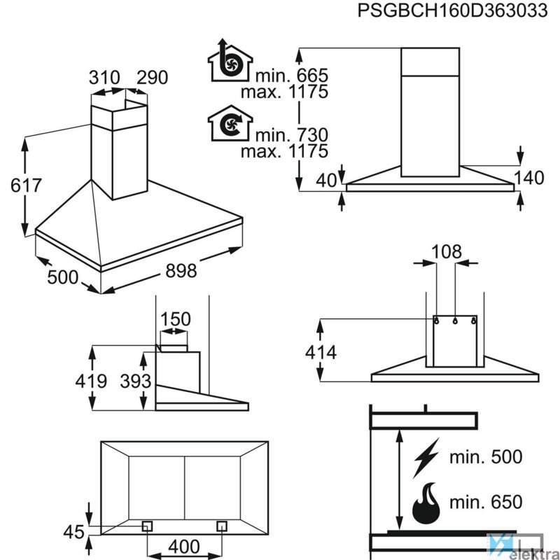| Alto evacuacion de aire rango minimo | 1175.0 mm |