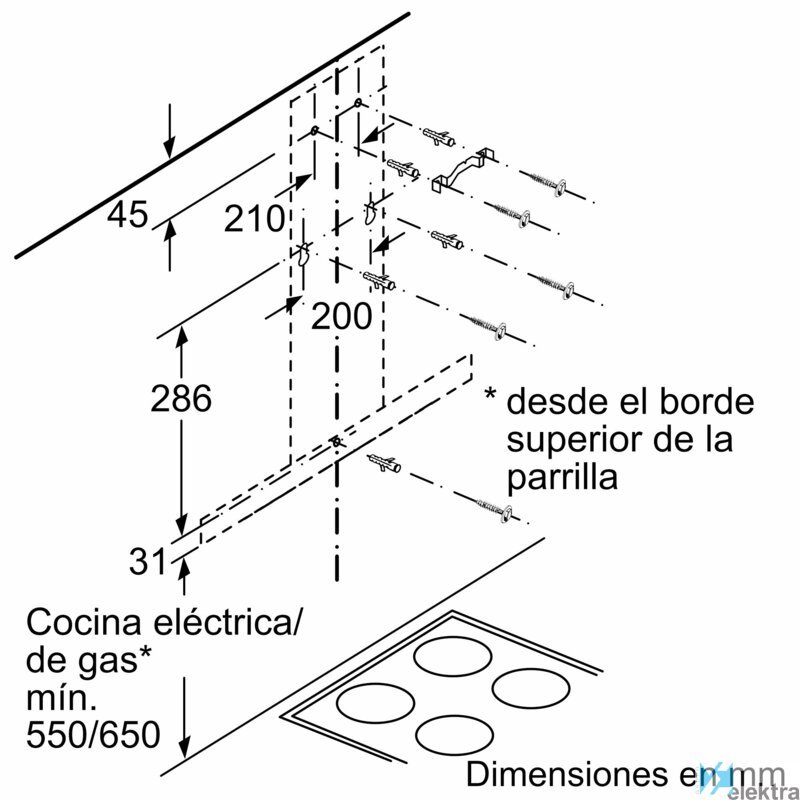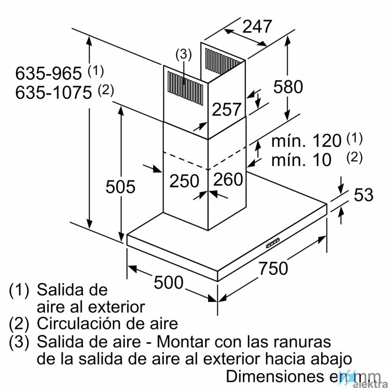 Campana decorativa de pared Bosch 75 cm Metallic Serie 2 DWB76BC50Recipiente :