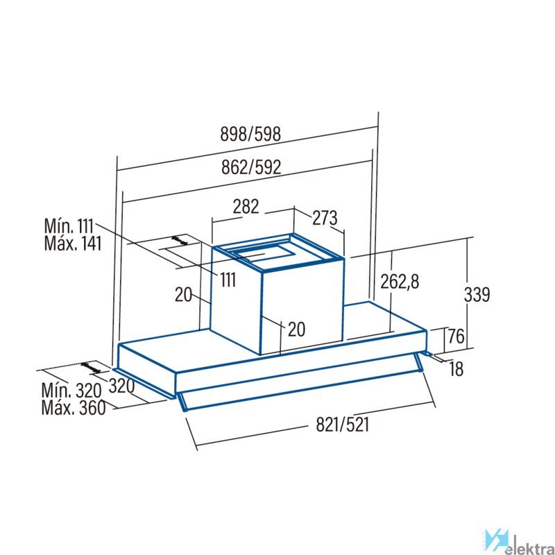 | Alto evacuacion de aire rango maximo | 339.0 mm |
