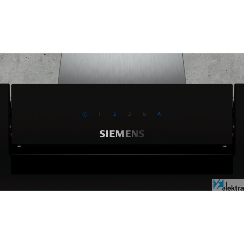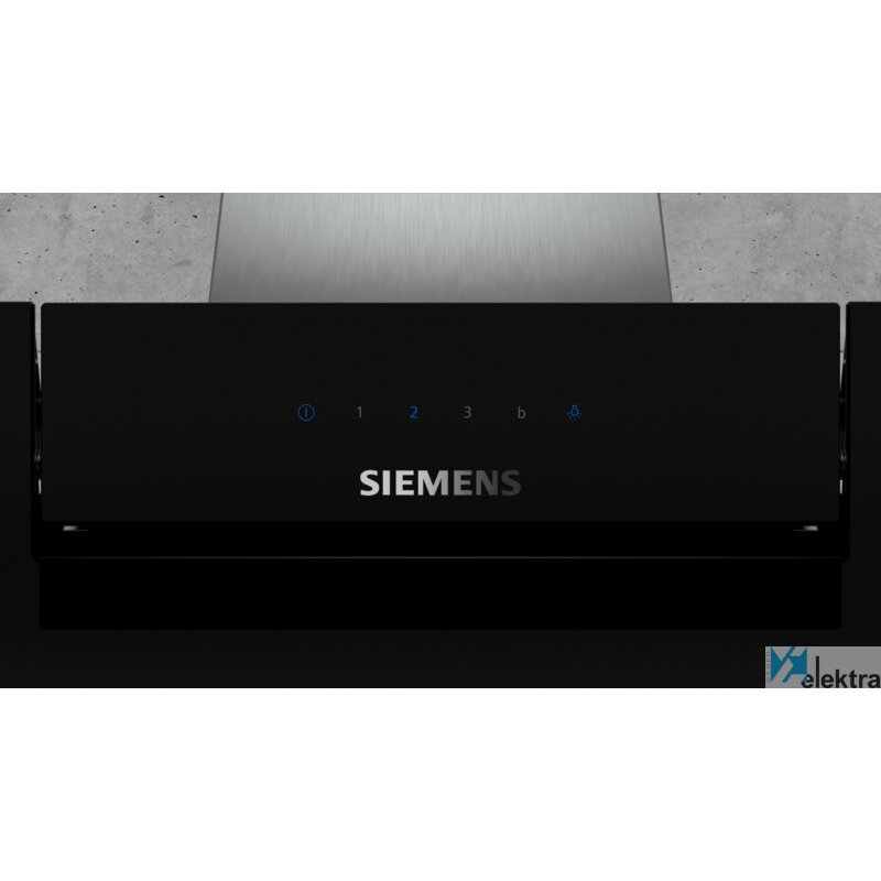 Siemens iQ300 LC87KEM60. Máxima capacidad de extracción: 669 m³/h, Tipo de extracción: Canalizado, Clasificación eficiencia dinámica de fluidos: B. Tipo: De pared, Color del producto: Negro, Material de la carcasa: Vidrio. Tipo de filtro de grasa: Aluminio, Número de filtros: 2 pieza(s). Número de bombillas: 2 bombilla(s), Tipo de bombilla: LED, Iluminancia: 114 lx. Consumo de energía anual: 59 kWh, Escala de eficiencia energética: A+++ a D, Potencia del motor: 255 W